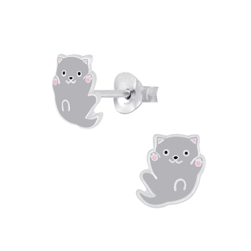 Sterling zilver 925 grijs kat oorbellen. Materiaal : 925 sterling zilver Afwerking : E-coat Grootte: 8 mm x 8 mm Verpakt in een bijbehorend sierad...