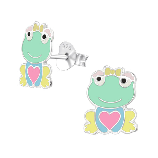 Alle gegevens bekijkenJoy|S - Zilveren kikker oorbellen - 7 x 8 mm - groen met glitter hartje - kinderoorbellen