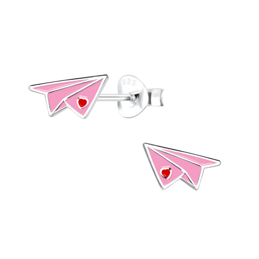 Alle gegevens bekijkenJoy|S - Zilveren papieren vliegtuig oorbellen - 5 x 8 mm - roze met rood hartje - kinderoorbellen