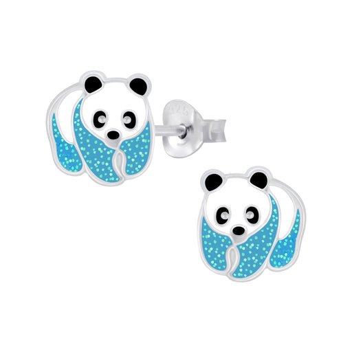 Alle gegevens bekijkenJoy|S - Zilveren Panda oorbellen - 8 x 9 mm - blauw met glitter