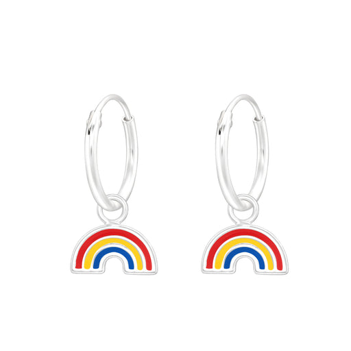 Sterling zilver 925 regenboog bedel oorbellen - oorringen. Design grootte regenboog bedel: 9 x 5 mm Diameter oorring: 12 mm Materiaal: Sterling zil...