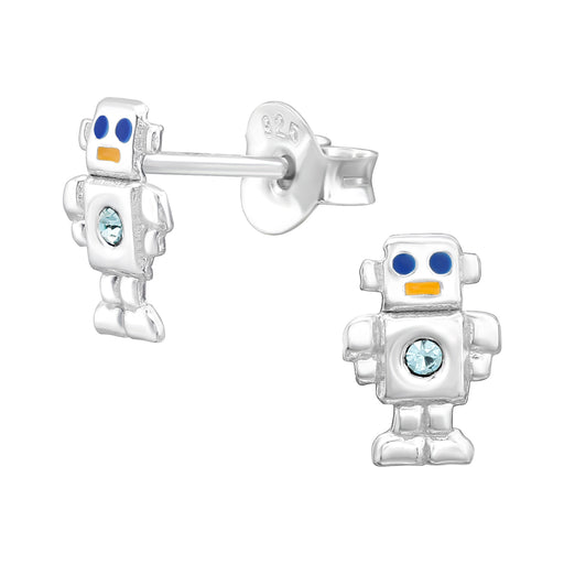 Sterling zilver 925 robot oorbellen, zilver met blauw oogjes en geel mondje en een kristalletje. Materiaal: Sterling zilver 925 Afwerking: E - coat...