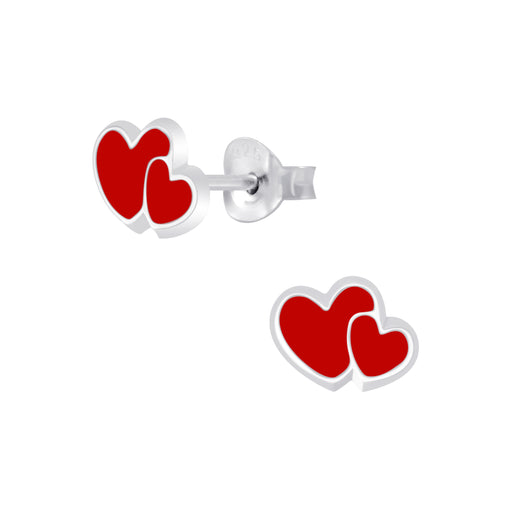 Joy|S - Zilveren rode hartjes oorbellen 9 x 6 mm dubbel hart