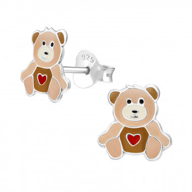 Sterling zilver 925 beer oorbellen - teddybeer met een hartje. Afmeting: 7 mm x 8 mm Materiaal: Sterling zilver 925 Afwerking: E-coat Verpakt in e...