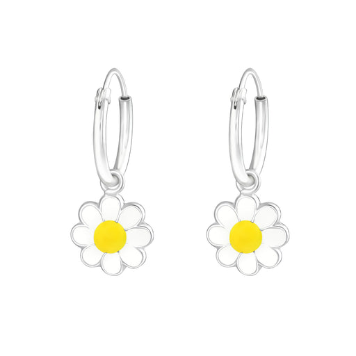 Alle gegevens bekijkenJoy|S - Zilveren bloem bedel oorbellen - madelief wit geel - oorringen - kinderoorbellen