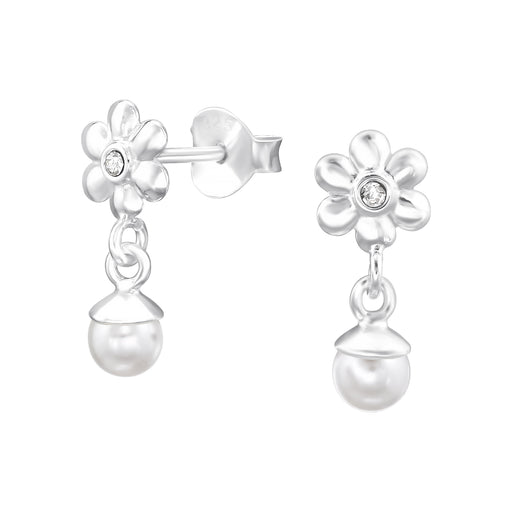 Alle gegevens bekijkenJoy|S - Zilveren bloem met parel bedel oorbellen - 5 x 14 mm - zilver wit - kinderoorbellen