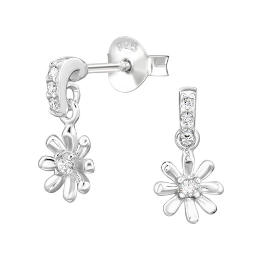 Alle gegevens bekijkenJoy|S - Zilveren bloem bedel oorbellen - oorknoppen met hangend bloemetje - 6 x 12 mm - zirkonia - sterling zilver 925 - kinderoorbellen