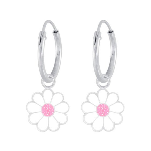 Alle gegevens bekijkenJoy|S - Zilveren bloem bedel oorbellen Madelief wit glitter roze
