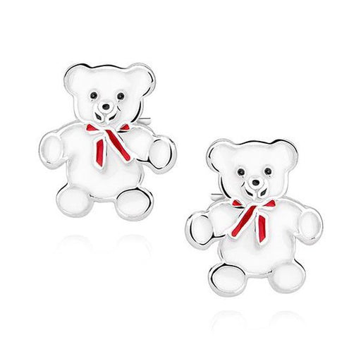Sterling zilver 925 beer oorbellen wit met een rode strikje Afmeting: 9.5 mm x 8.5 mm Materiaal: Sterling zilver 925 Verpakt in een bijbehorend ...