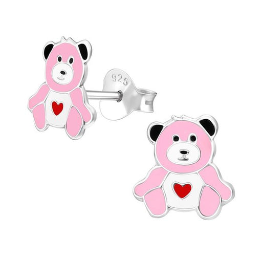 Alle gegevens bekijkenJoy|S - Zilveren beer oorbellen 9 mm roze met rood hartje