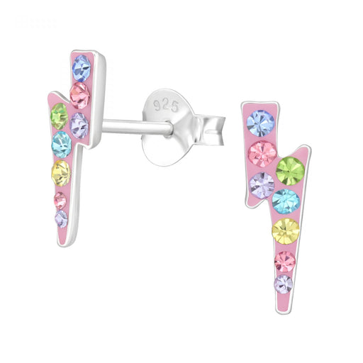 Alle gegevens bekijkenJoy|S - Zilveren bliksem oorbellen - 4 x 11 mm - roze met multicolor kristal - kinderoorbellen