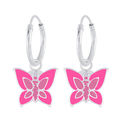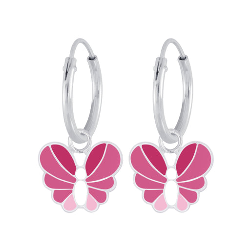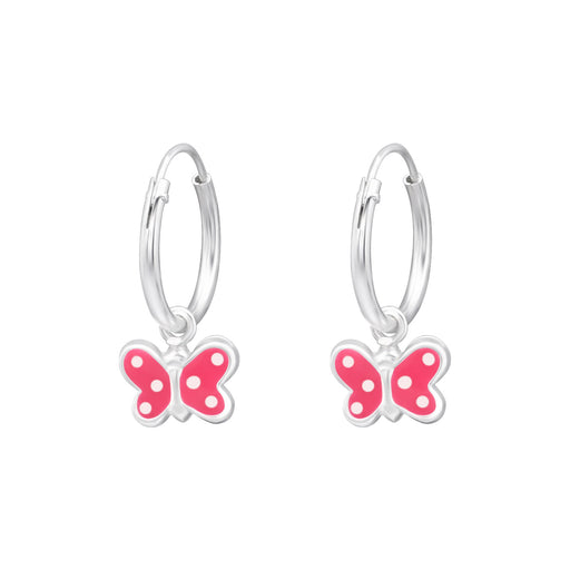 Sterling zilver 925 vlinder bedel oorbellen - oorringen - roze met witte stipjes. Afmeting vlinder bedel: 7 mm x 5 mm Diameter oorring: 12 mm Mate...