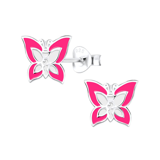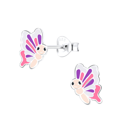 Sterling zilver 925 vlinder oorbellen met roze tintjes. Materiaal: Sterling zilver 925 Afwerking: E - coat Afmeting: 7 mm x 6 mm  Verpakt in een bi...