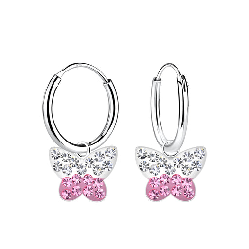 Joy|S - Zilveren vlinder bedel oorbellen - oorringen - roze en wit kristal - kinderoorbellen
