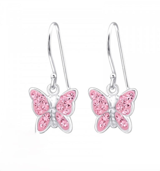 Joy|S - Zilveren vlinder bedel oorbellen - oorringen - roze kristal - kinderoorbellen