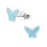 Sterling zilver 925 vlinder oorbellen - blauw met glitter Afmeting: 7 mm x 6 mm Materiaal: Sterling zilver 925 Afwerking: E-coat  Verpakt in een bi...
