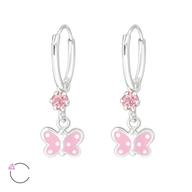 Sterling zilver 925 vlinder bedel oorbellen - oorringen - met roze met roze kristal.Afmeting bedel: 10 mm x 8 mmDiameter oorring: 12 mmBewerking: E...