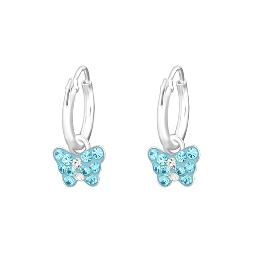 Joy|S - Zilveren vlinder bedel oorbellen - oorringen - blauw kristal - kinderoorbellen