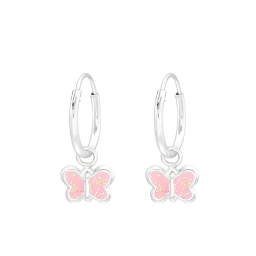 Sterling zilver 925 vlinder bedel oorbellen - oorringen - roze met glitter. Afmeting vlinder bedel: 8 mm x 6 mm Diameter oorring: 12 mm Materiaal: ...