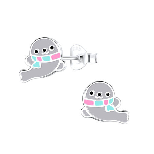 Sterling zilver 925 zeehond oorbellen. Afmeting: 9 mm x 8 mm Materiaal: Sterling zilver 925 Afwerking: E- coat  Verpakt in een bijbehorend sierad...