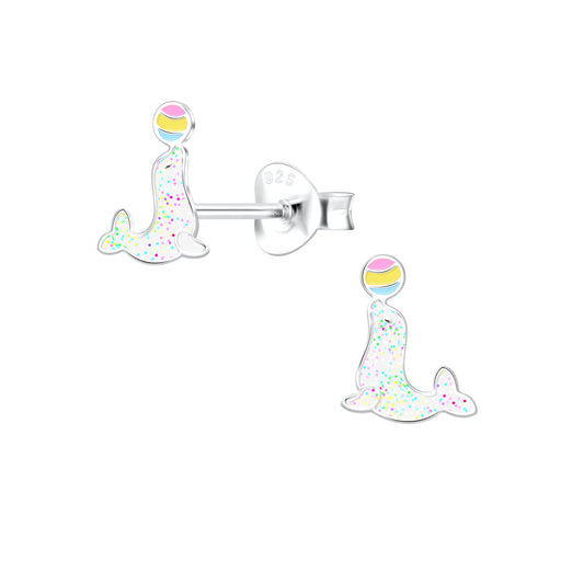 Joy|S - Zilveren zeehond oorbellen - 6 x 7 mm - glitter - met bal