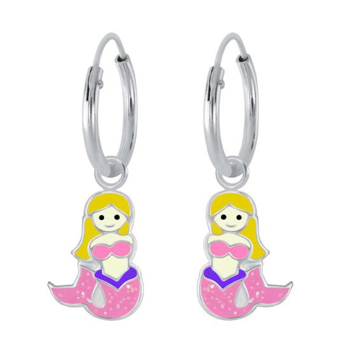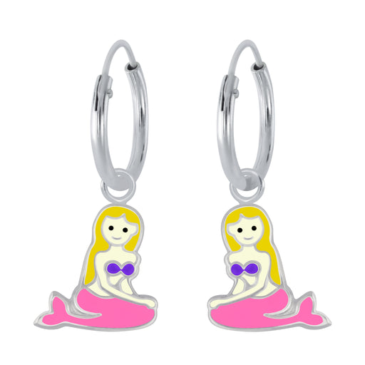 Sterling zilver 925 zeemeermin bedel oorbellen met glitter roze staart - oorringen Afmeting bedel: 7 mm x 9 mm Diameter oorring: 12 mm Bewerking: E...