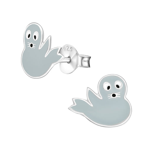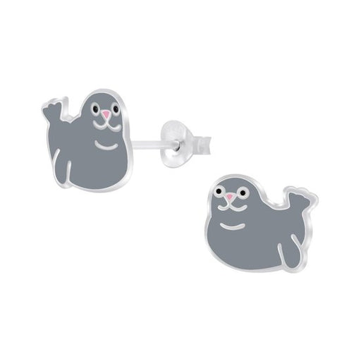 Sterling zilver 925 zeehond oorbellen grijs. Materiaal : 925 sterling zilver Afwerking : E-coat Grootte: 9 mm x 9 mm  Verpakt in een bijbehorend si...