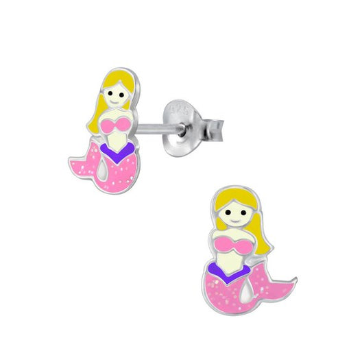 Sterling zilver 925 zeemeermin oorbellen met glitter roze. Afmeting: 9 mm x 8 mm Materiaal: Sterling zilver 925 Afwerking: E-coat  Verpakt in een b...