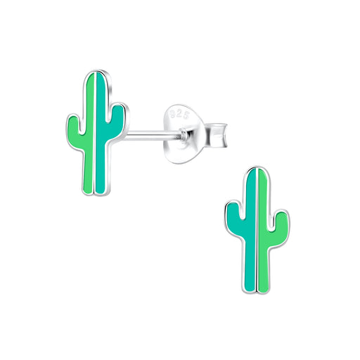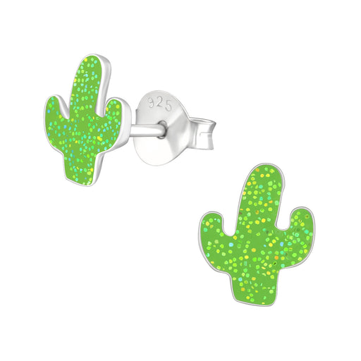 Alle gegevens bekijkenJoy|S - Zilveren cactus oorbellen - 6 x 8 mm - groen met glitter - kinderoorbellen