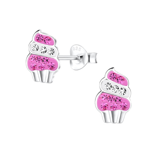 Sterling zilver 925 - cupcake/ ijsje oorbellen. Afmeting: 6 mm x 10 mm Materiaal: Sterling zilver 925 Afwerking: E-coat Steensoort: Kristal Verpakt...