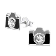 Sterling zilver 925 fotocamera oorbellen met kristal. Materiaal : 925 sterling zilver Afwerking : E-coat Grootte: 9 mm x 7 mm Verpakt in een bijbeh...