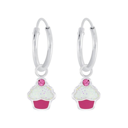 Sterling zilver 925 cupcake bedel oorbellen glitter wit met een roze kristalletje Design afmeting cupcake: 7 mm x 8 mm Doorsnede oorring: 12 mm Bew...