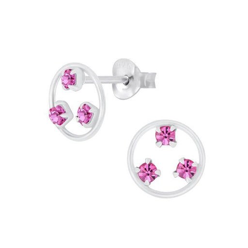 Sterling zilver 925 cirkel oorbellen met 3 roze kristalletjes Materiaal: 925 sterling zilver Afwerking: E-coat Afmeting cirkel: 8 mm x 8 mm Verpak...