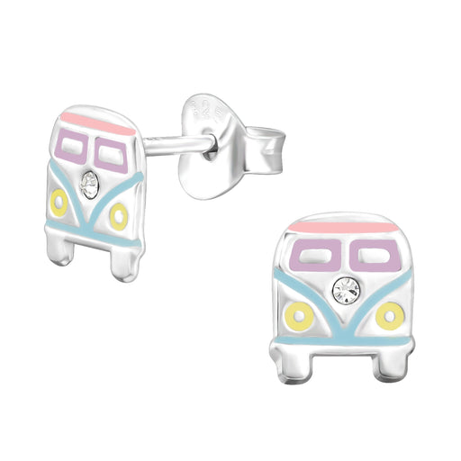 Alle gegevens bekijkenJoy|S - Zilveren bus oorbellen - 6 x 7 mm - pastel met kristal - t1 busje VW