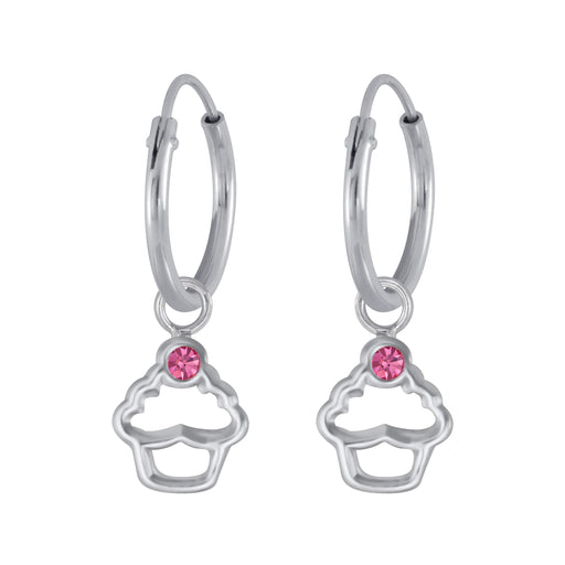 Sterling zilver 925 cupcake met roze kristal oorringen. Materiaal : 925 sterling zilver Afwerking : E-coat Grootte cupcake: 6 mm x 7 mm Diameter oo...