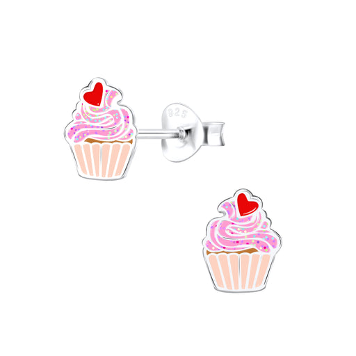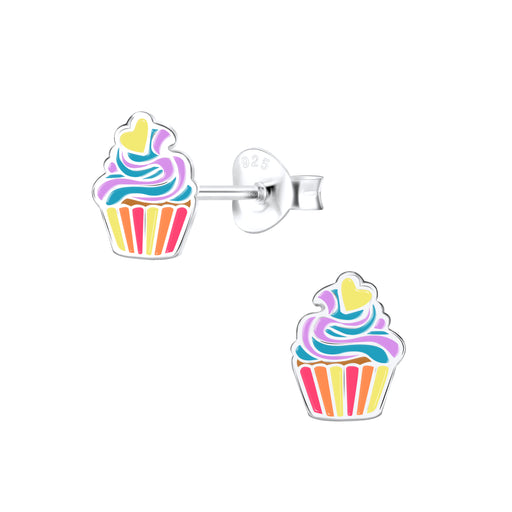 Sterling zilver 925 cupcake oorbellen - multicolor met roze hartje. Afmeting: 6 mm x 8 mm Materiaal: Sterling zilver 925 Afwerking: E-coat Verpakt...