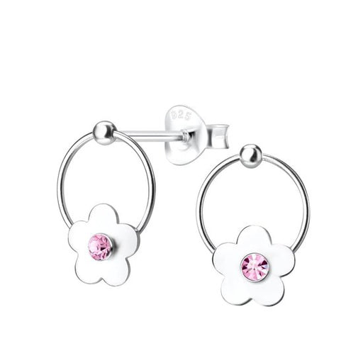 Alle gegevens bekijkenJoy|S - Zilveren Daisy bloem oorbellen in cirkel met kristal roze