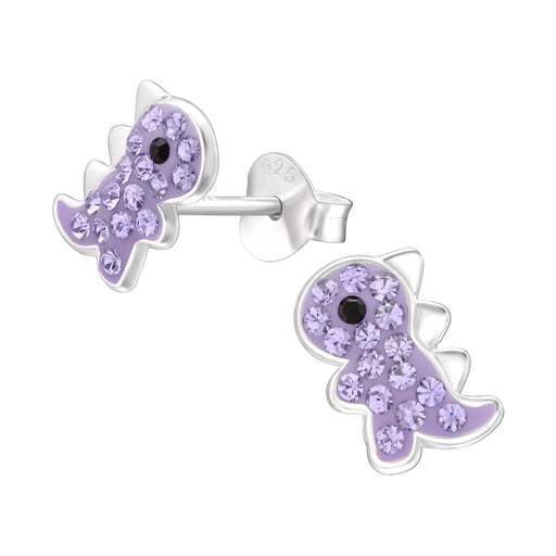 Sterling zilver 925 dinosaurus oorbellen met paars kristal. Afmeting: 6 mm x 7 mm Materiaal: Sterling zilver 925 Afwerking: E- coat Verpakt in e...
