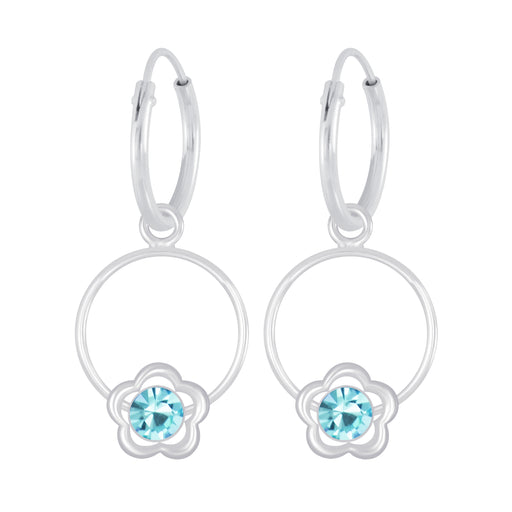 Alle gegevens bekijkenJoy|S - Zilveren Daisy bloem oorbellen in cirkel met kristal blauw