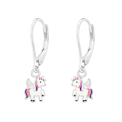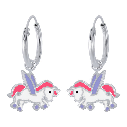 Joy|S - Zilveren eenhoorn bedel oorbellen - leverback sluiting - unicorn met vleugeltjes - kinderoorbellen