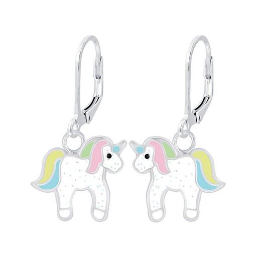 Sterling zilver 925 Eenhoorn/ unicorn oorbellen glitter wit met pastel kleurtjes De oorbellen hebben een chique leverback sluiting.  Materiaal : 92...
