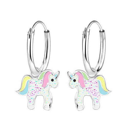 Joy|S - Zilveren eenhoorn bedel oorbellen - glitter - unicorn oorringen