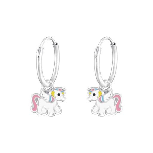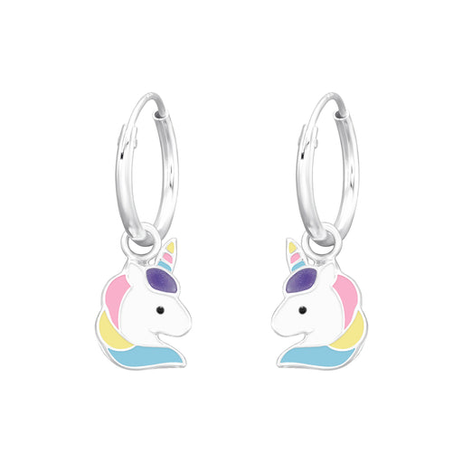 Joy|S - Zilveren eenhoorn met hoelahoep oorbellen - 7 x 9 mm - unicorn pastel