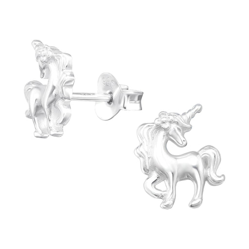 Joy|S - Zilveren eenhoorn oorbellen - 6 x 7 mm - unicorn oorknoppen - kinderoorbellen