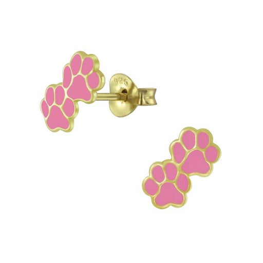 Joy|S - Zilveren dierenpoot oorbellen 9 x 5 mm kat hond poot roze - goudplating