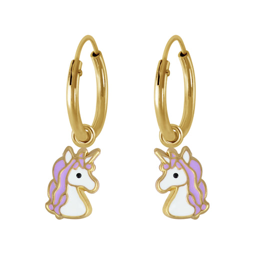 Joy|S - Zilveren eenhoorn oorbellen paars unicorn - goudplating