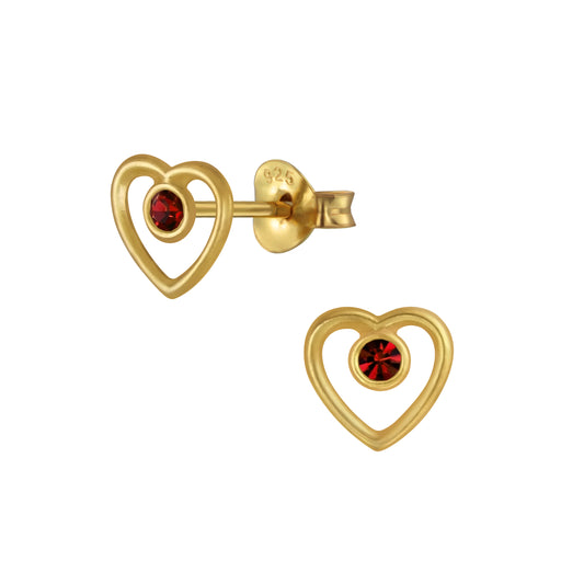 Joy|S - Zilveren hartje oorbellen 7 mm - rood kristal - goudplating