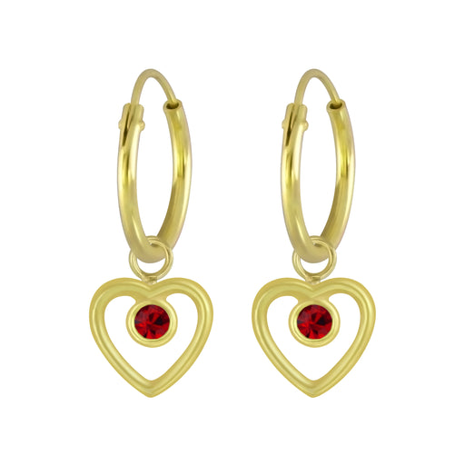 Joy|S - Zilveren hartje bedel oorbellen kristal rood - goudplating oorringen