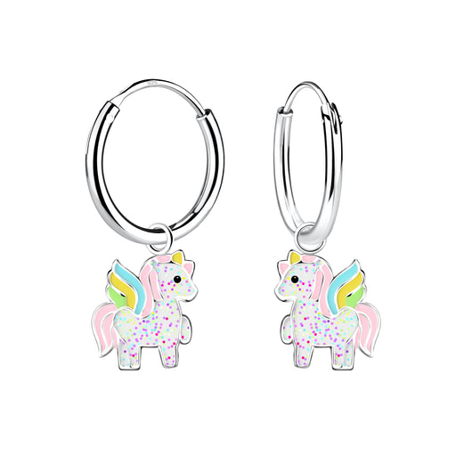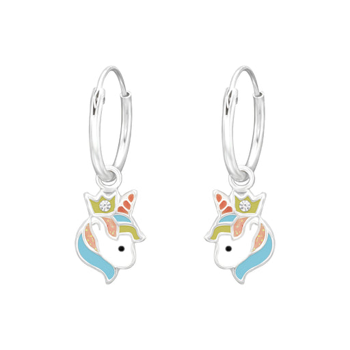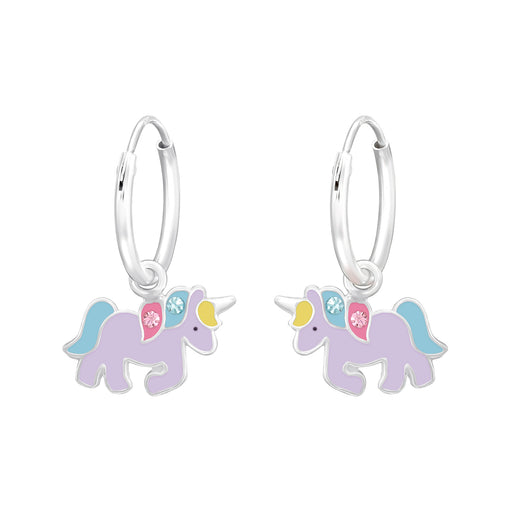 Alle gegevens bekijkenJoy|S - Zilveren eenhoorn met hoelahoep oorbellen - 7 x 9 mm - unicorn pastel