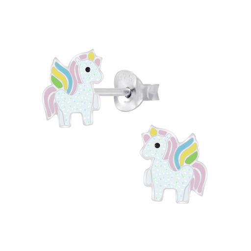 Alle gegevens bekijkenJoy|S - Zilveren eenhoorn oorbellen - glitter - unicorn met vleugeltjes - 9 mm - kinderoorbellen